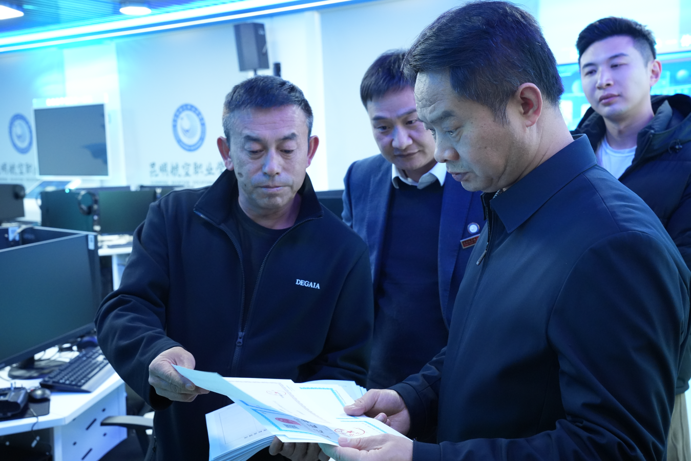 12月1日,滇中新区党工委副书记、管委会副主任杨东伟带队,到我校开展实地调研工作。学校理事长何建波,校领导班子成员及相关部门负责人全程陪同。杨东伟副书记一行先后来到教学实训室、图书馆、学校安全指挥中心等核心区域仔细查看教学设施建设情况,详细了解了学校人才培养模式、师资队伍建设、首届招生情况及学校中长期发展规划等核心问题。何建波着重介绍了学校办学规模、专业建设特色、实训室建设成果、师资队伍建设成效、校企合作模式以及招生工作进展等情况,强调学校将紧扣“立德树人”根本任务,立足滇中新区,充分发挥云南独特区位优势,面向全国,辐射南亚东南亚,紧密服务“一带一路”倡议和云南航空网建设,致力于为航空运输、航空装备产业和低空经济、人工智能配套产业培养亟需的高技能人才,为区域航空事业发展注入源源不断的动力。